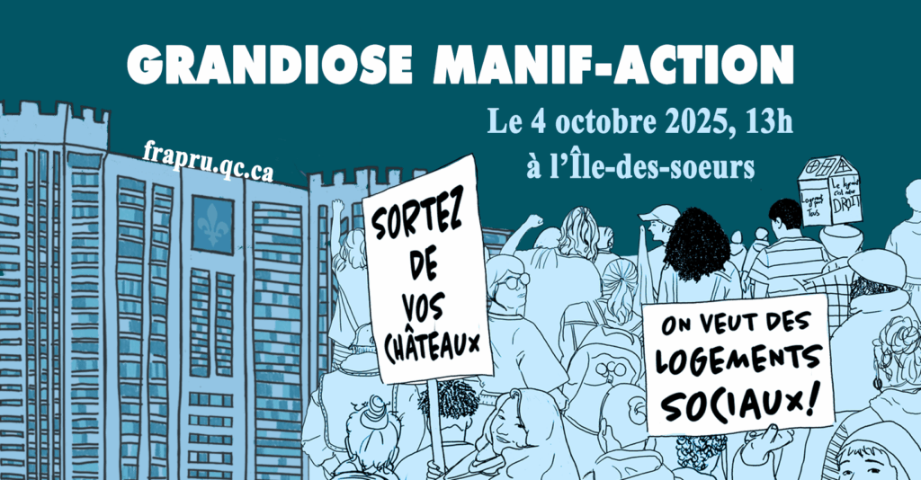 Montréal, le 22 octobre 2025 – À mi-campagne, le Front d’action populaire en réaménagement urbain (FRAPRU) s’inquiète de l’absence d’engagements chiffrés pour le développement de logements sociaux dans les engagements […]