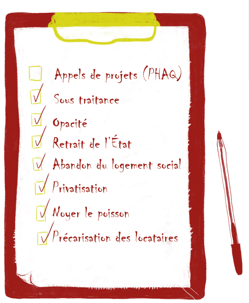 On parle maintenant de crises sociales. Les besoins pour les logements sociaux de différentes formes augmentent. Or, au même moment, on assiste à un désengagement de l’État dans le logement social, noyé de plus en plus dans des terminologies comme « abordable » ou « hors-marché », qui ne donnent aucune garantie sur le nombre de logements sociaux.
